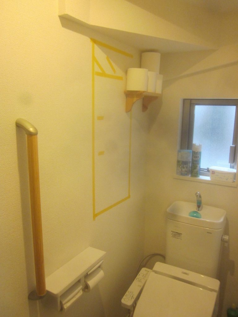 水回りの湿気対策は、カビや結露に強い珪藻土のエコクイーン(日本ケイソウ土建材)を天井に使用致しました。洗濯物を干すスペースを増やすためにホスクリーンを取り付けました。